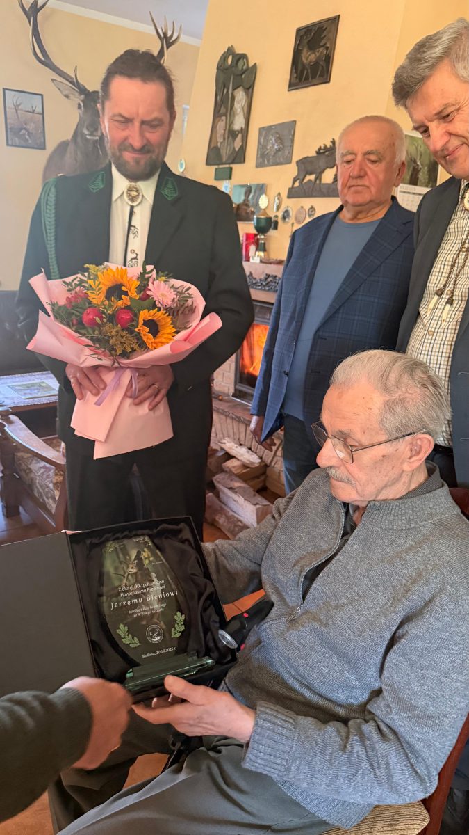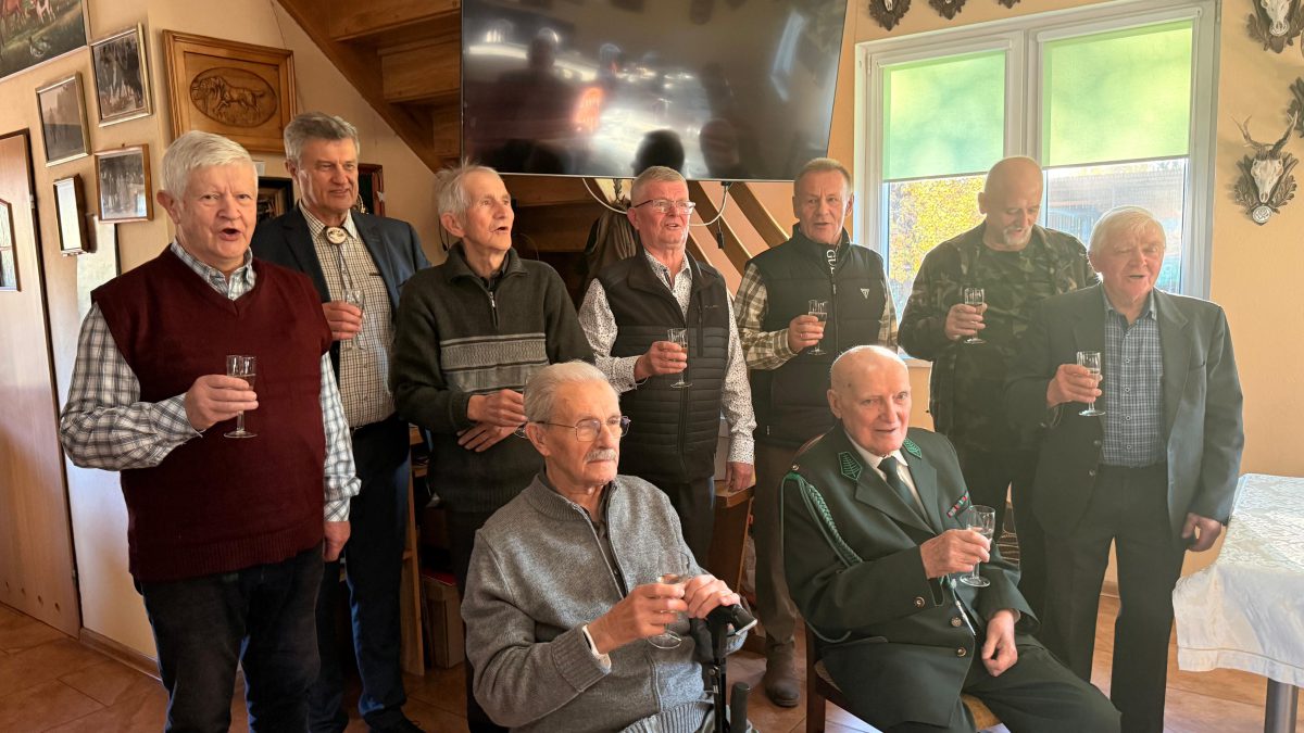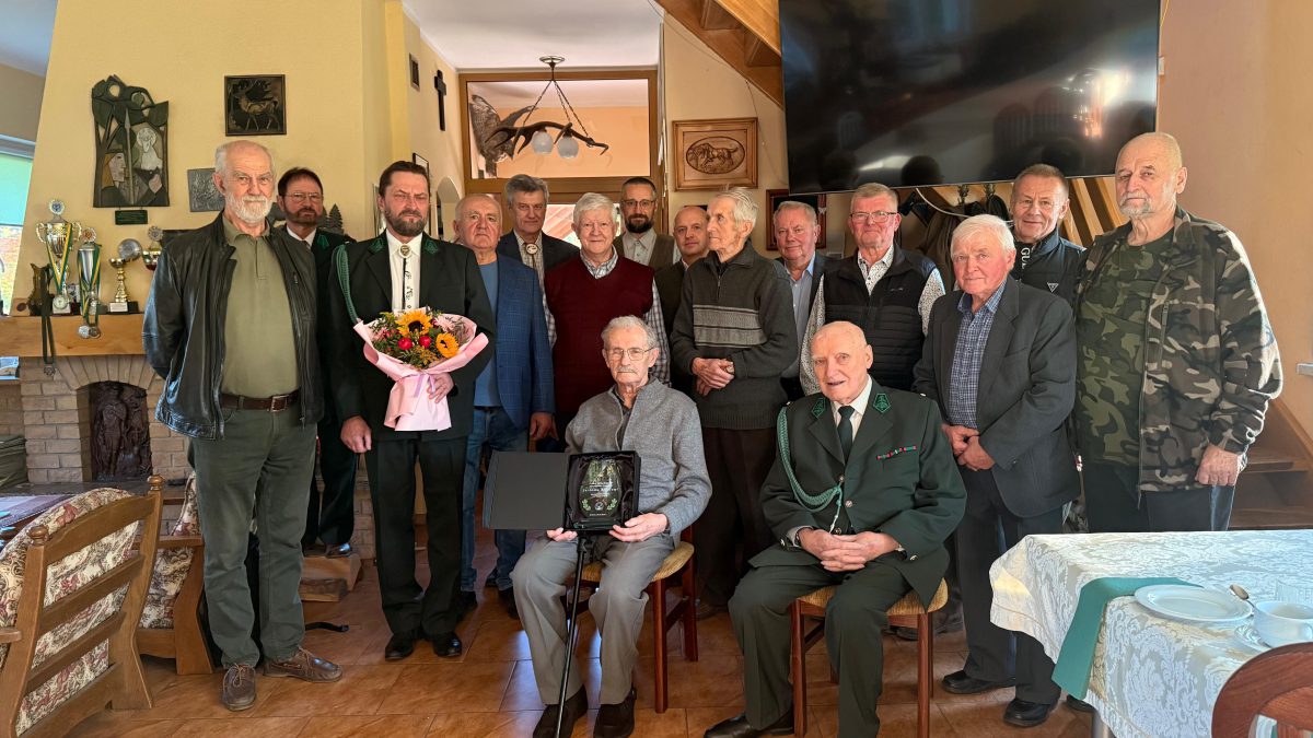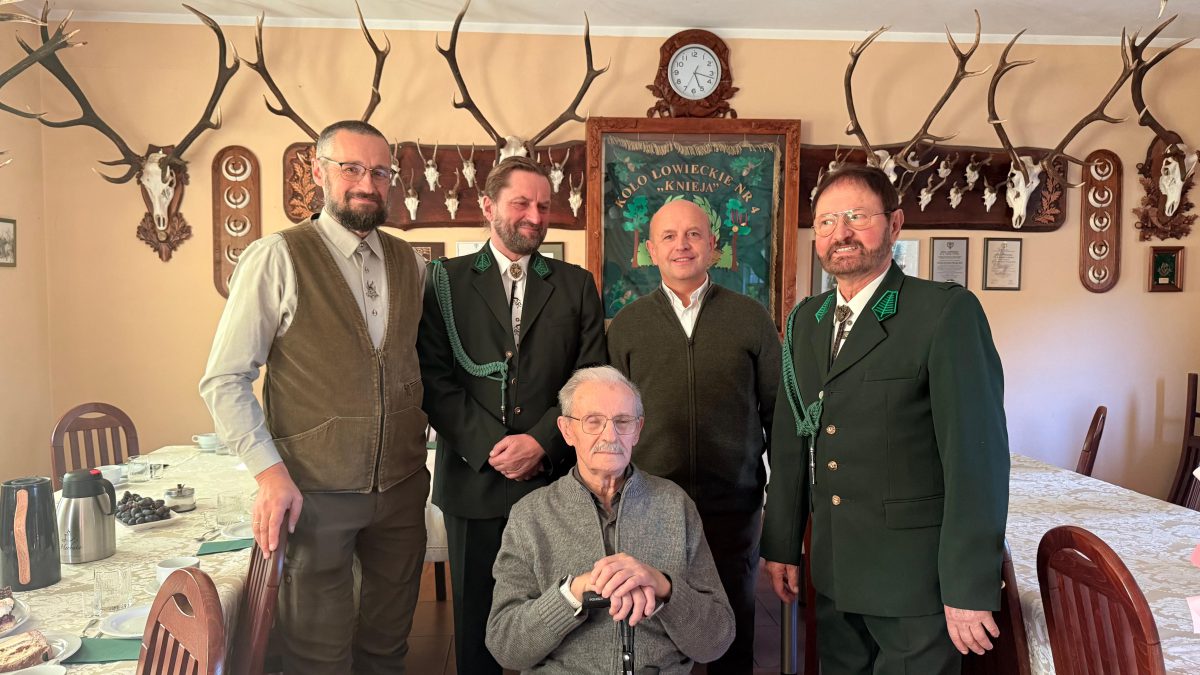 W bieżącym roku Honorowy Prezes Koła – Kolega Jerzy Bień obchodził 90-te urodziny. W ich przededniu, Zarząd Koła zorganizował w Kniei uroczystość z tej okazji, na którą zjechali starsi i młodsi seniorzy spośród naszej łowieckiej braci. Należy przypomnieć, że szanowny jubilat jest członkiem naszego koła od 68 lat, 10 lat był członkiem komisji rewizyjnej (z czego 4 lata jej przewodniczył). Wreszcie przez 13 lat, do roku 2005 pełnił funkcję Prezesa Zarządu i w tym też roku Walne Zgromadzenie nadało mu tytuł Honorowego Prezesa Koła.