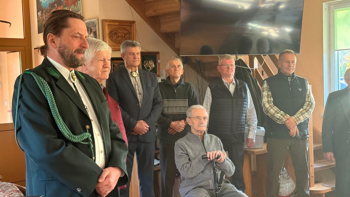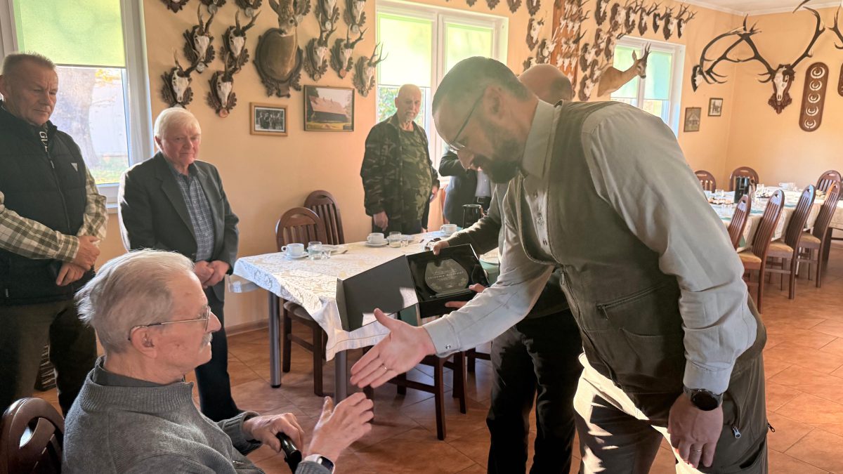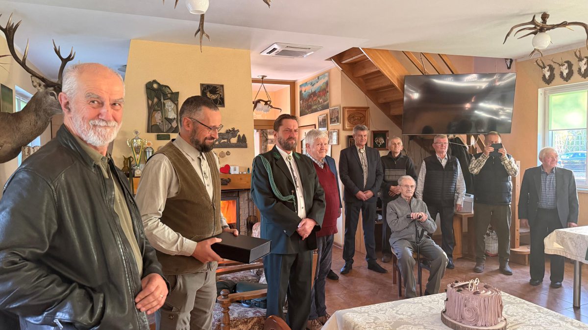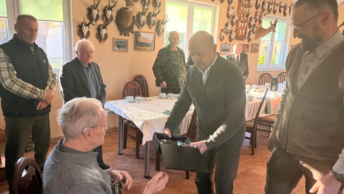 W bieżącym roku Honorowy Prezes Koła – Kolega Jerzy Bień obchodził 90-te urodziny. W ich przededniu, Zarząd Koła zorganizował w Kniei uroczystość z tej okazji, na którą zjechali starsi i młodsi seniorzy spośród naszej łowieckiej braci. Należy przypomnieć, że szanowny jubilat jest członkiem naszego koła od 68 lat, 10 lat był członkiem komisji rewizyjnej (z czego 4 lata jej przewodniczył). Wreszcie przez 13 lat, do roku 2005 pełnił funkcję Prezesa Zarządu i w tym też roku Walne Zgromadzenie nadało mu tytuł Honorowego Prezesa Koła.
