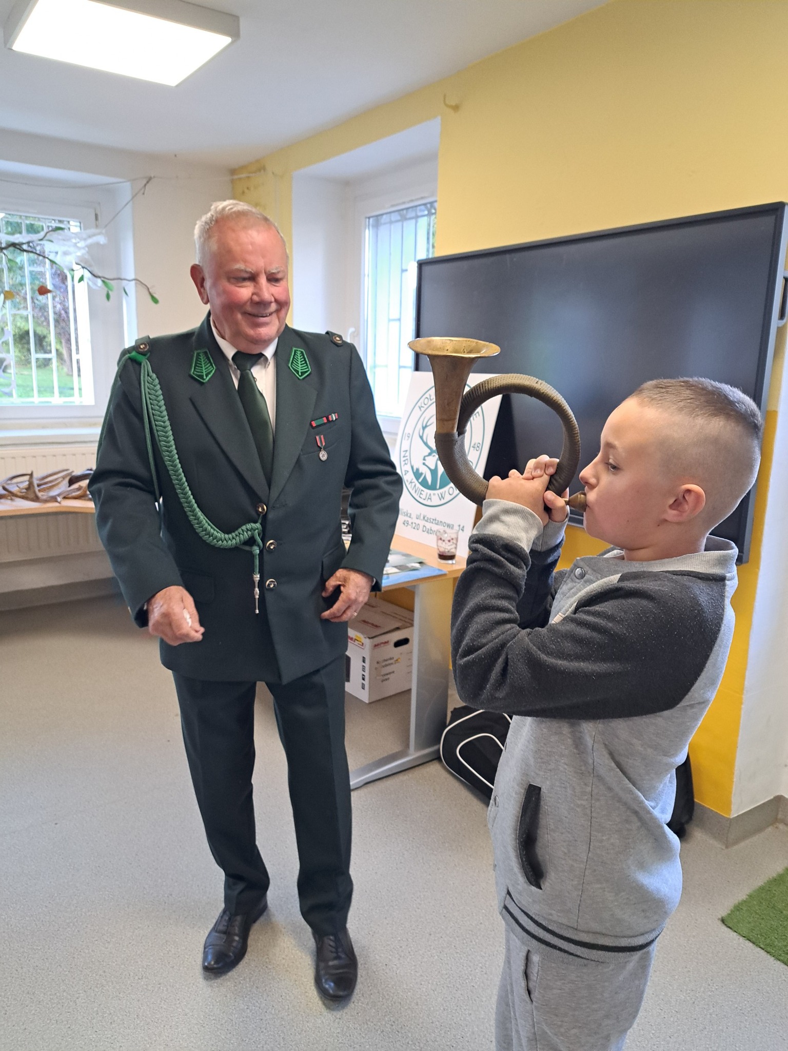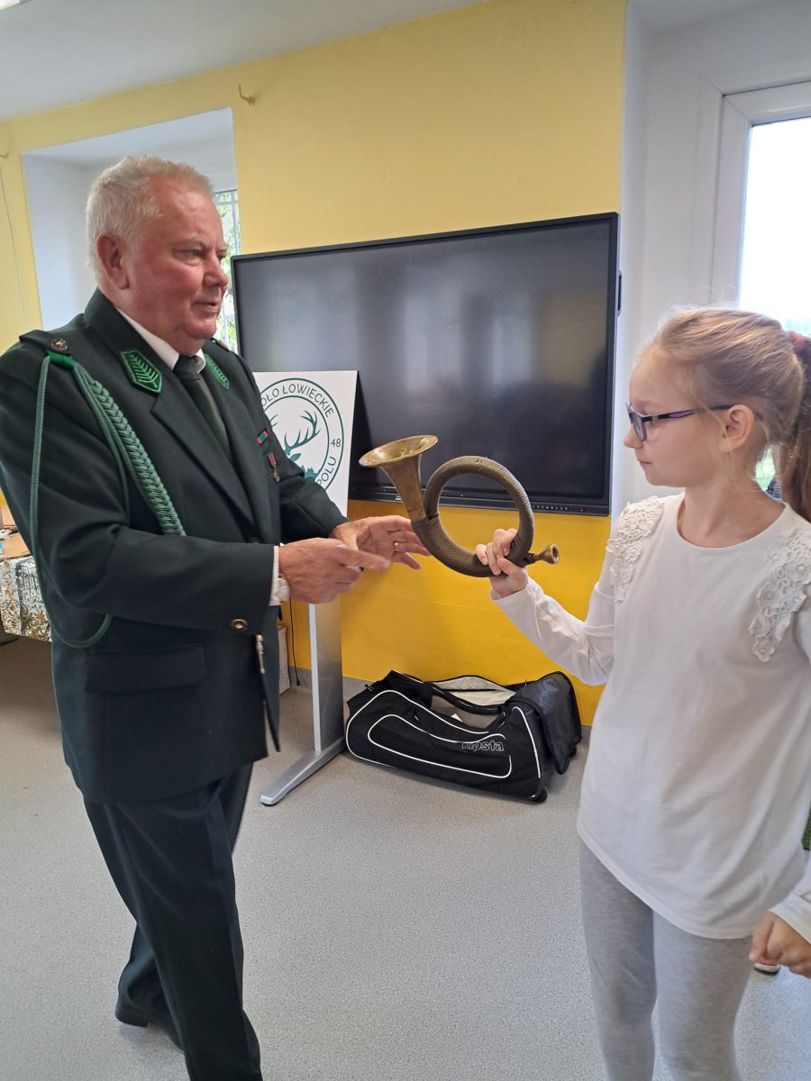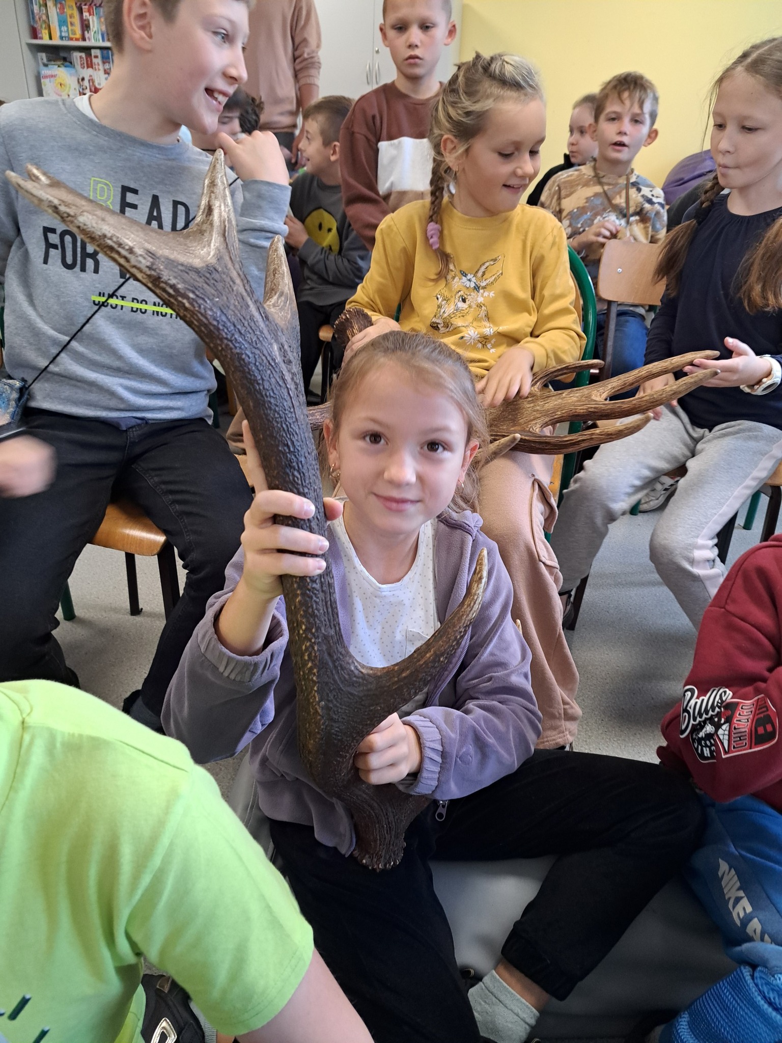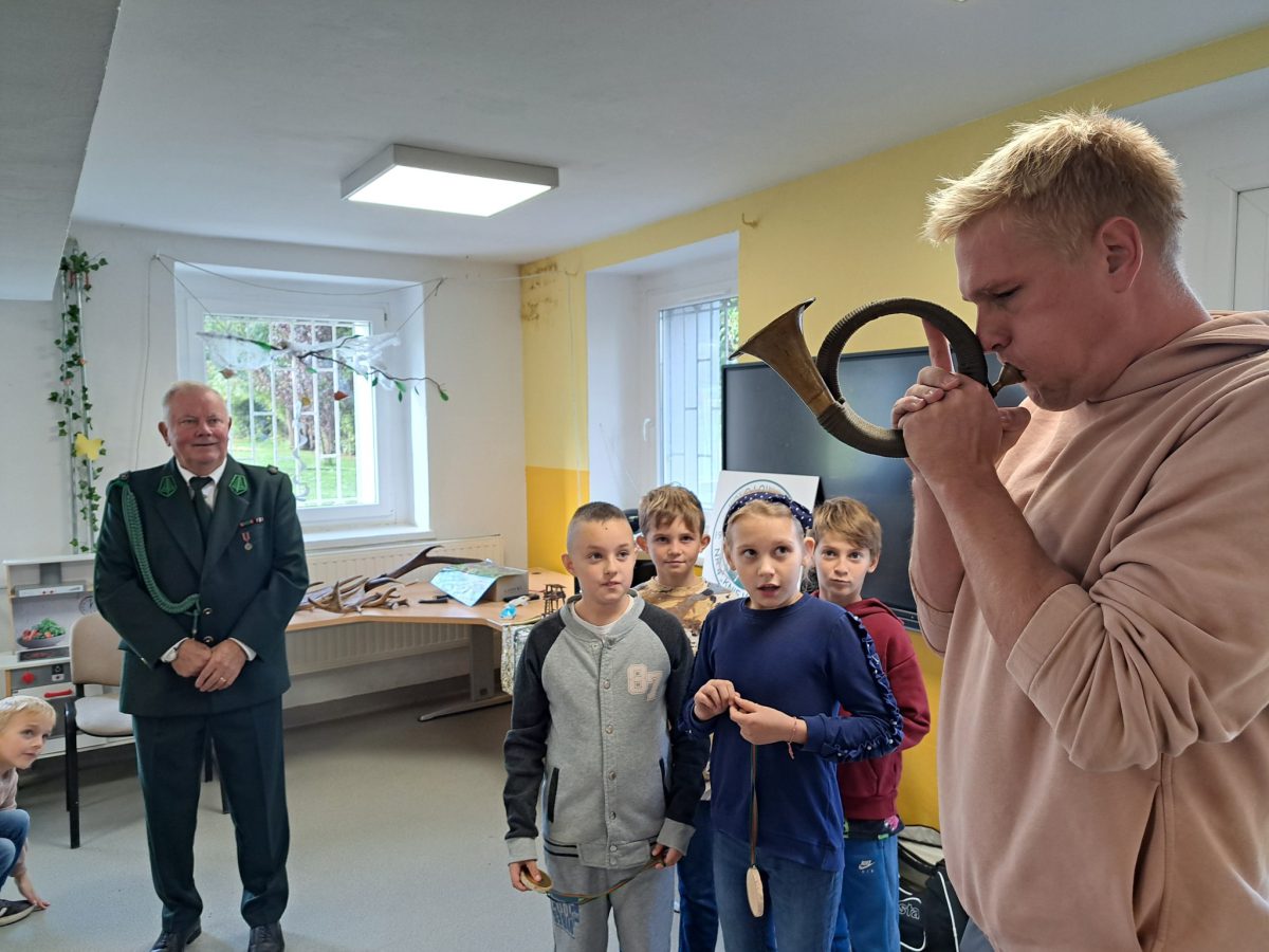 Staramy się pokazać dzieciom łowiectwo, ponieważ wiemy jak ważną rolę pełni w utrzymaniu równowagi w przyrodzie i minimalizowaniu konfliktów z gospodarką rolną i leśną. Każda nasza lekcja to próba uwrażliwienia dzieci na kwestię odpowiedzialności i szacunku do przyrody, ale także etycznego pozyskiwania pożywienia i szacunku do tradycji. Cieszy nas bardzo, że dzieci chętnie uczestniczą w zajęciach i są bardzo aktywne, szczególnie gdy mogą dotknąć poroży i parostków. Emocje wzbudza też konkurs sygnalistów, którzy próbują z wszystkich sił wydobyć dźwięki z naszych sygnałówek, jednak tylko nielicznym się to udaje.