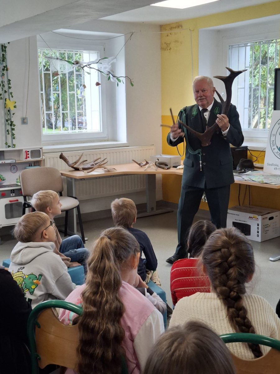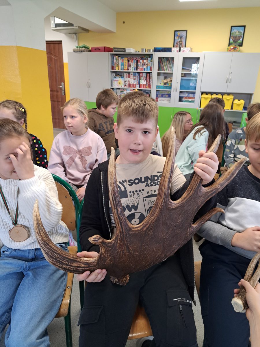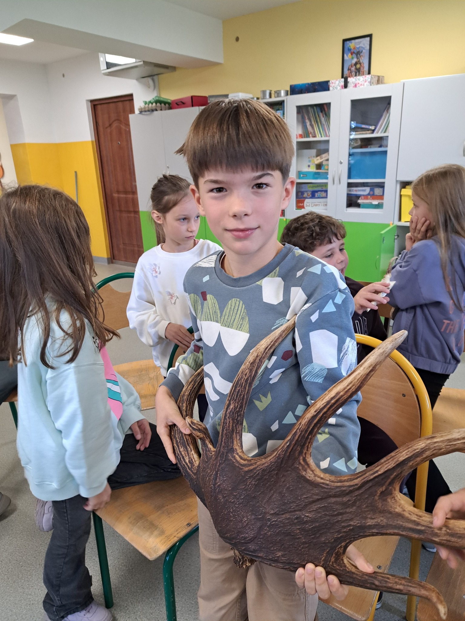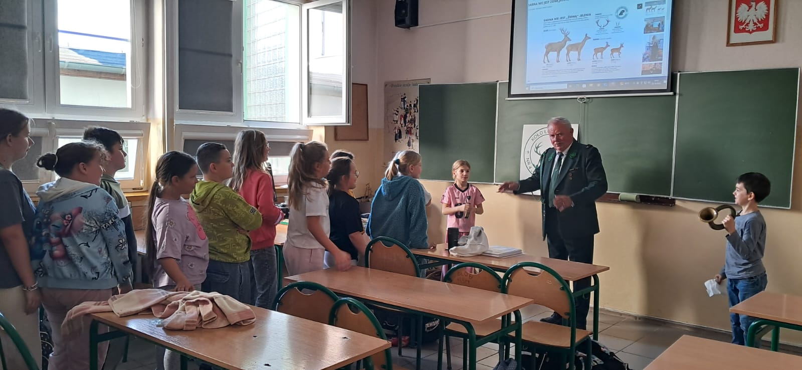 Staramy się pokazać dzieciom łowiectwo, ponieważ wiemy jak ważną rolę pełni w utrzymaniu równowagi w przyrodzie i minimalizowaniu konfliktów z gospodarką rolną i leśną. Każda nasza lekcja to próba uwrażliwienia dzieci na kwestię odpowiedzialności i szacunku do przyrody, ale także etycznego pozyskiwania pożywienia i szacunku do tradycji. Cieszy nas bardzo, że dzieci chętnie uczestniczą w zajęciach i są bardzo aktywne, szczególnie gdy mogą dotknąć poroży i parostków. Emocje wzbudza też konkurs sygnalistów, którzy próbują z wszystkich sił wydobyć dźwięki z naszych sygnałówek, jednak tylko nielicznym się to udaje.