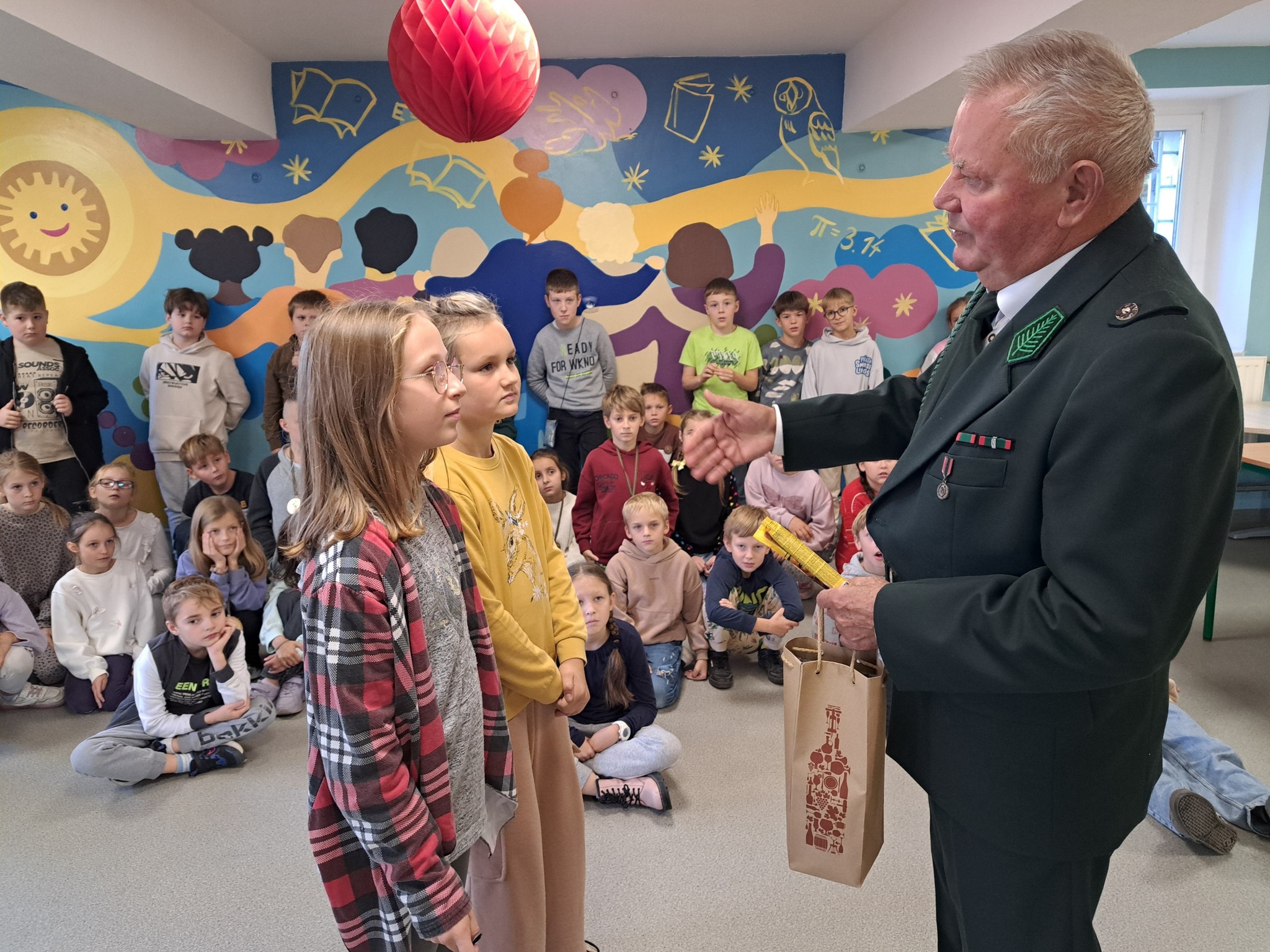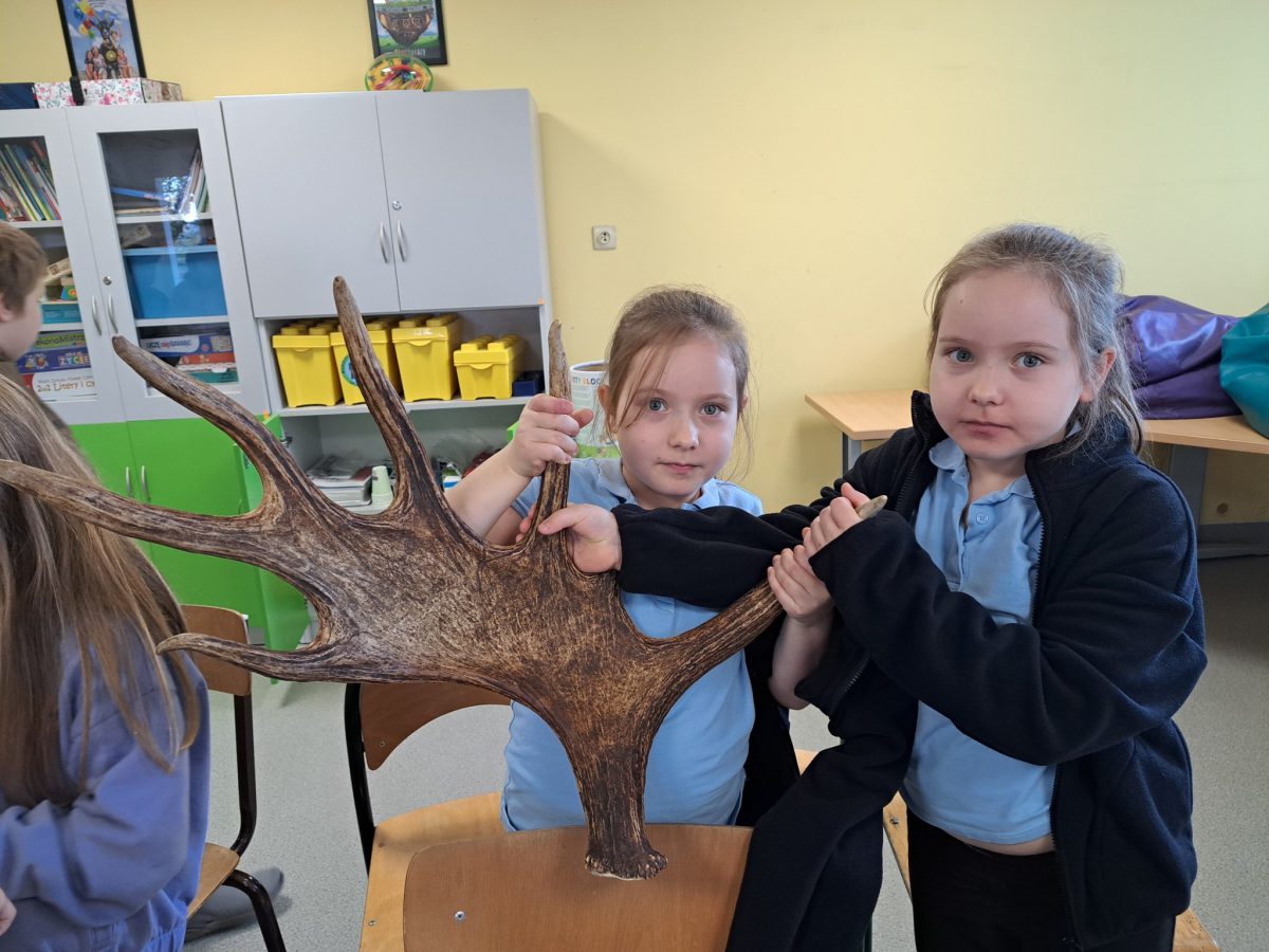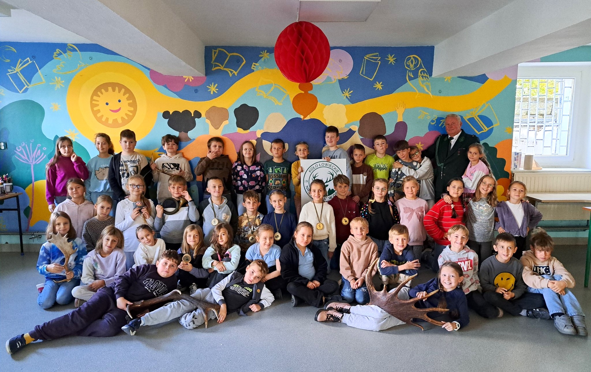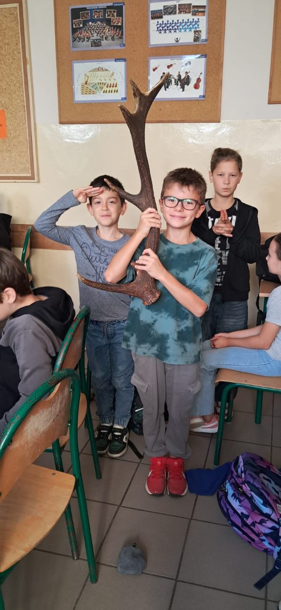 Staramy się pokazać dzieciom łowiectwo, ponieważ wiemy jak ważną rolę pełni w utrzymaniu równowagi w przyrodzie i minimalizowaniu konfliktów z gospodarką rolną i leśną. Każda nasza lekcja to próba uwrażliwienia dzieci na kwestię odpowiedzialności i szacunku do przyrody, ale także etycznego pozyskiwania pożywienia i szacunku do tradycji. Cieszy nas bardzo, że dzieci chętnie uczestniczą w zajęciach i są bardzo aktywne, szczególnie gdy mogą dotknąć poroży i parostków. Emocje wzbudza też konkurs sygnalistów, którzy próbują z wszystkich sił wydobyć dźwięki z naszych sygnałówek, jednak tylko nielicznym się to udaje.