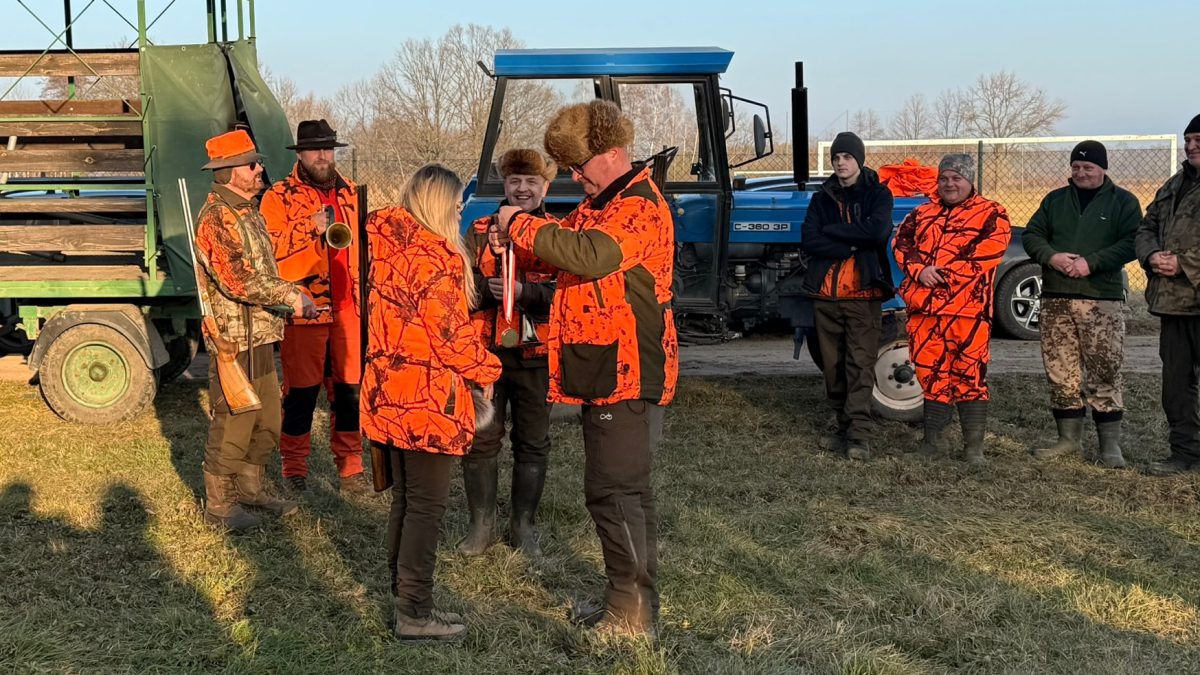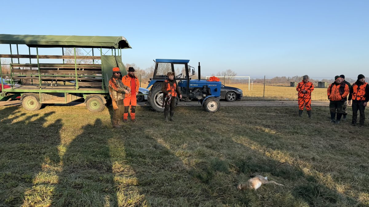 W związku z zapowiadanymi mrozami na Święta Bożego Narodzenia, z inicjatywy prezesa planowane polowanie zbiorowe na Dębinie 27 grudnia zmieniono na polowanie na zające. Intencją było sprawdzenie stanu zająca w obwodzie, ale przede wszystkim przypomnienie starszym kolegom, a młodszym pokazanie, jak wygląda i na czym polega takie polowanie. Na zbiórce stanęło 24 myśliwych oraz 17 naganiaczy, czyli spełnione były warunki kadrowe na udane łowy. Również mroźna pogoda, przy której zając startuje do przodu spod naganki, dopisała. W pierwszych dwóch pędzeniach widziany był jeden kot, który jednak wywinął spod Ani Jaworskiej do tyłu i nie był strzelany. W jedynym leśnym miocie Pokryszkowym, pojawił się dzik, który po obserwacji Stasia Goryla przeładowującego śruty na breneki zaszył się w gęstej uprawie i przeczekał niebezpieczeństwo. Po przerwie śniadaniowej, przy Żelaznej pojawiły się w miocie dwa zające, z których jeden okazał się pierwszym w życiu, gościnnie polującej u nas koleżanki Kingi. Na pokocie wybrzmiał nie grany prawie 30 lat sygnał „zając na rozkładzie”, a ceremonię pasowania przeprowadził Wojciech Dudik. Młodsi koledzy zaznajomieni zostali z regułami i przebiegiem polowania na zające, starsi sobie to przypomnieli. Szkoda tylko, że zabrakło w tym wszystkim zajęcy, wydaje się, że niestety już bezpowrotnie.
