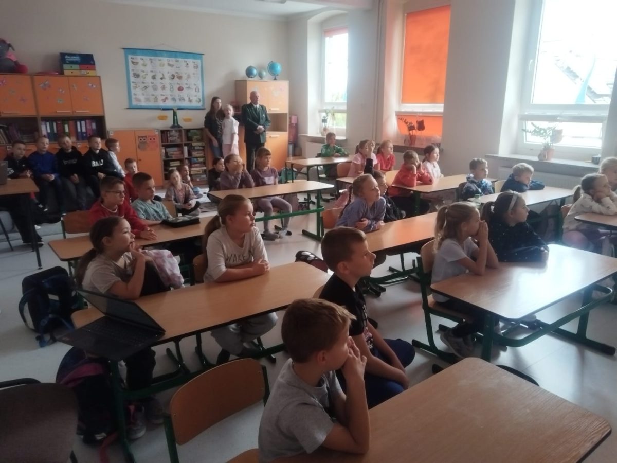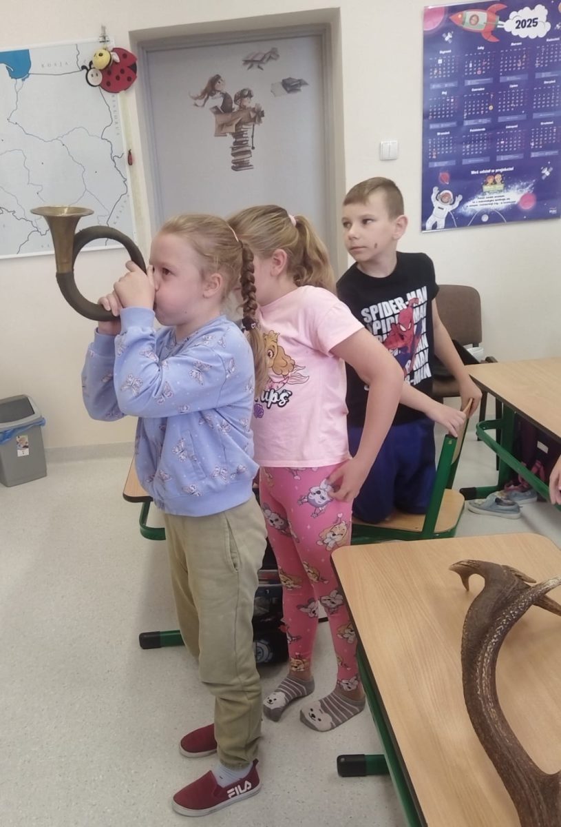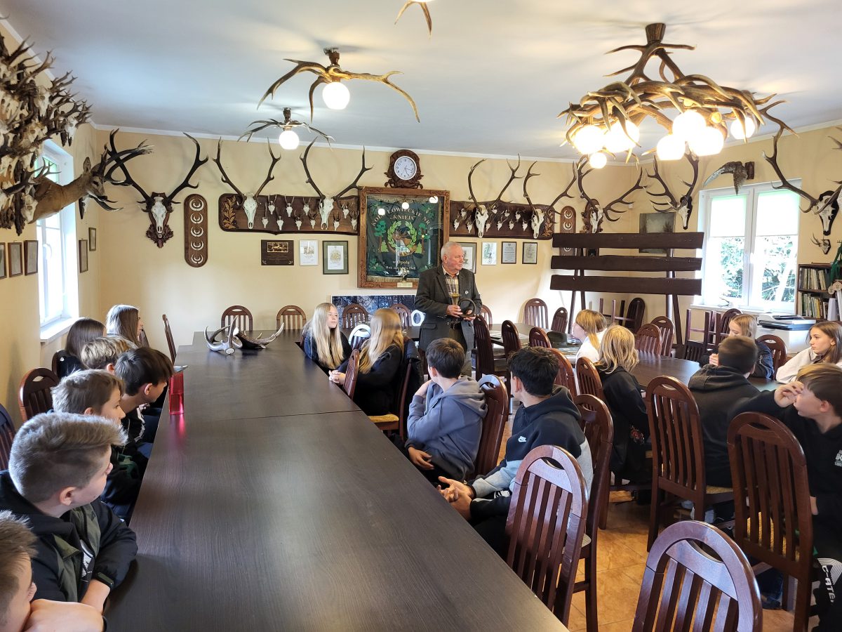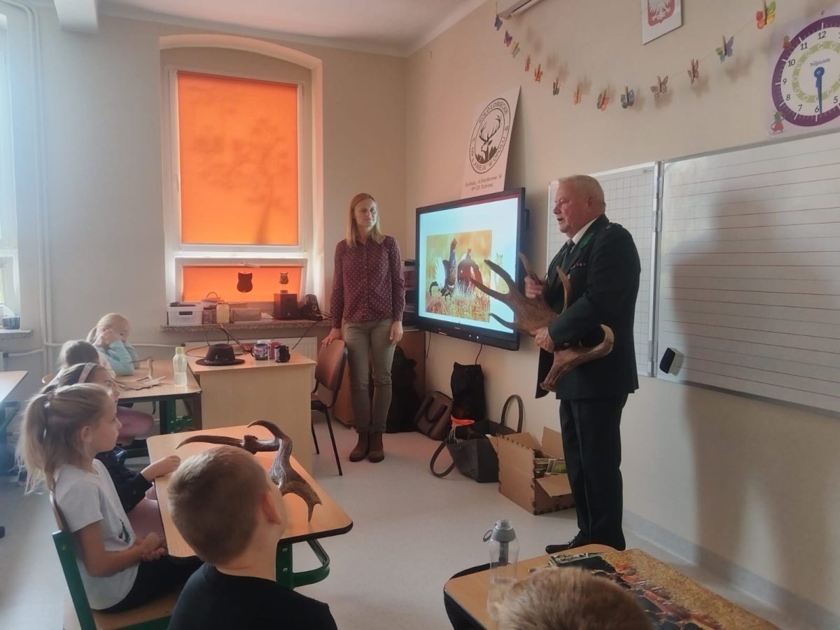 Rykowisko rykowiskiem, ale poza polowaniem są jeszcze inne ważne sprawy. W ostatnich dniach, poza wyjściami do lasu, prowadziliśmy zajęcia edukacyjne dla uczniów szkół podstawowych w Dąbrowie i Wawelnie.